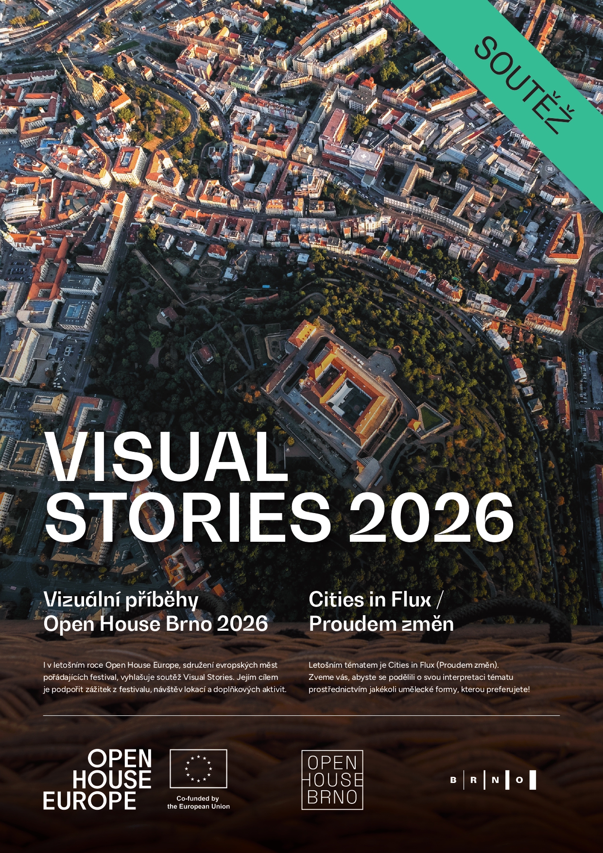 Výhra: Nejlepší 3 autoři budou oceněni věcnými cenami a jejich dílo prezentováno v rámci výstavy Visual Stories: Open House Brno 2026. Jejich autoři získají závěrečnou cenu - zájezd na partnerský festival Open House Brno - Vídeň, či Záhřeb.